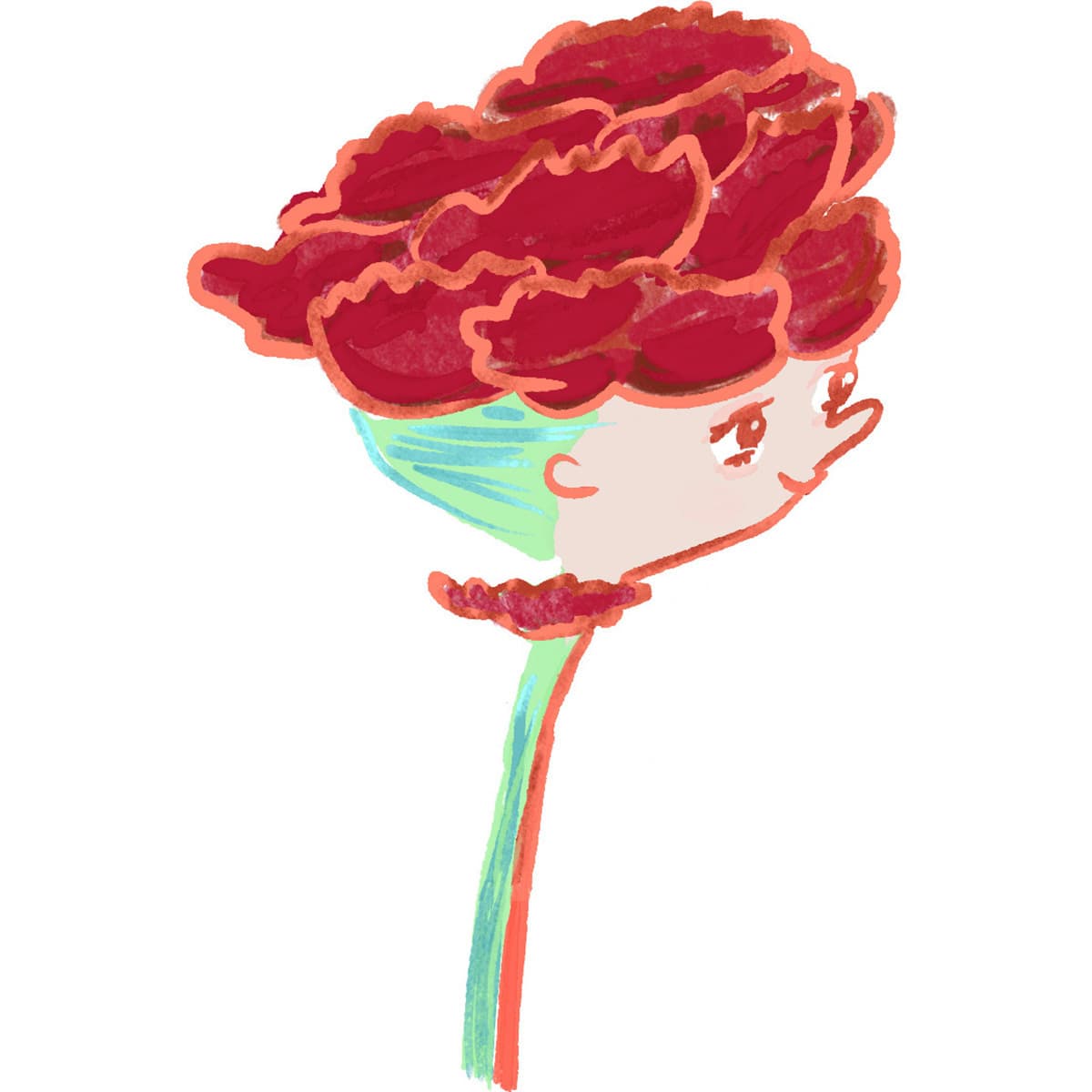 母の日の季節になると、お花屋さんは赤いカーネーションの鉢だらけになっていた。