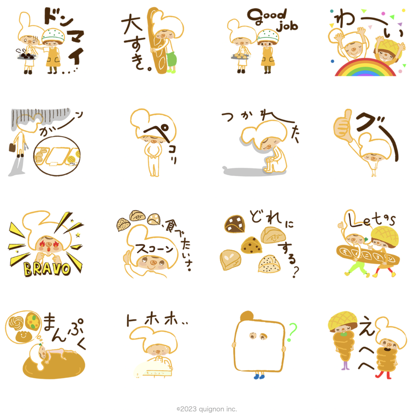 当時のシェフが、「お金はないけれど、好きなことやっていいよ。」と言ってくれてたのを本気で信じて、自分の描く物語と実際のお店がシンクロして行ったらいいな。と思い、「キィニョン」という謎のパンの妖精みたいなものを描くようになりました。キィニョンをはじめ、他のキャラクターもどんどん生まれていきました。
